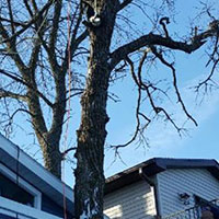 Our crew is also trained in advanced tree rigging techniques using natural and false crotch rigging methods. By lifting and lowering cut limbs in an efficient and controlled manner, we can take down any tree regardless of the size and surrounding obstacles without damaging your property. Buildings, patios and play structures are all examples of high value fixed objects we work around every day. Sometimes a home may have too many of these landscape features to access with a bucket truck or track lift and that's where our expert tree climbing arborists come in, using the latest climbing techniques to safely take the tree down from the inside out. Whatever the job, Cutting Edge Tree Services can complete your tree removal with complete clean-up all in the same day! Make sure to check out our photo gallery to see us in action.